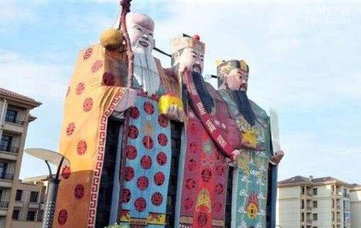 雨一直在下。终于,写有“天子庄园”的大门楼出现在眼前,听说如果在白天,应该能望见那座“象形建筑”了。驱车拐了几个弯儿,穿过一大片别墅区,三个高大的人形赫然矗立在百米外的空旷处——真的很害怕。到了跟前仰视,隐约看清三位大仙的笑脸,心里劝说自己:他们都是给人间带来大福大寿的好神仙,不怕,先进去再说吧。